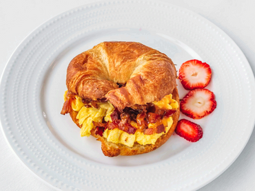 This sandwich is perfect for a quick and satisfying breakfast! It's made with bacon, eggs, and cheddar cheese layered on a fresh-baked butter croissant.